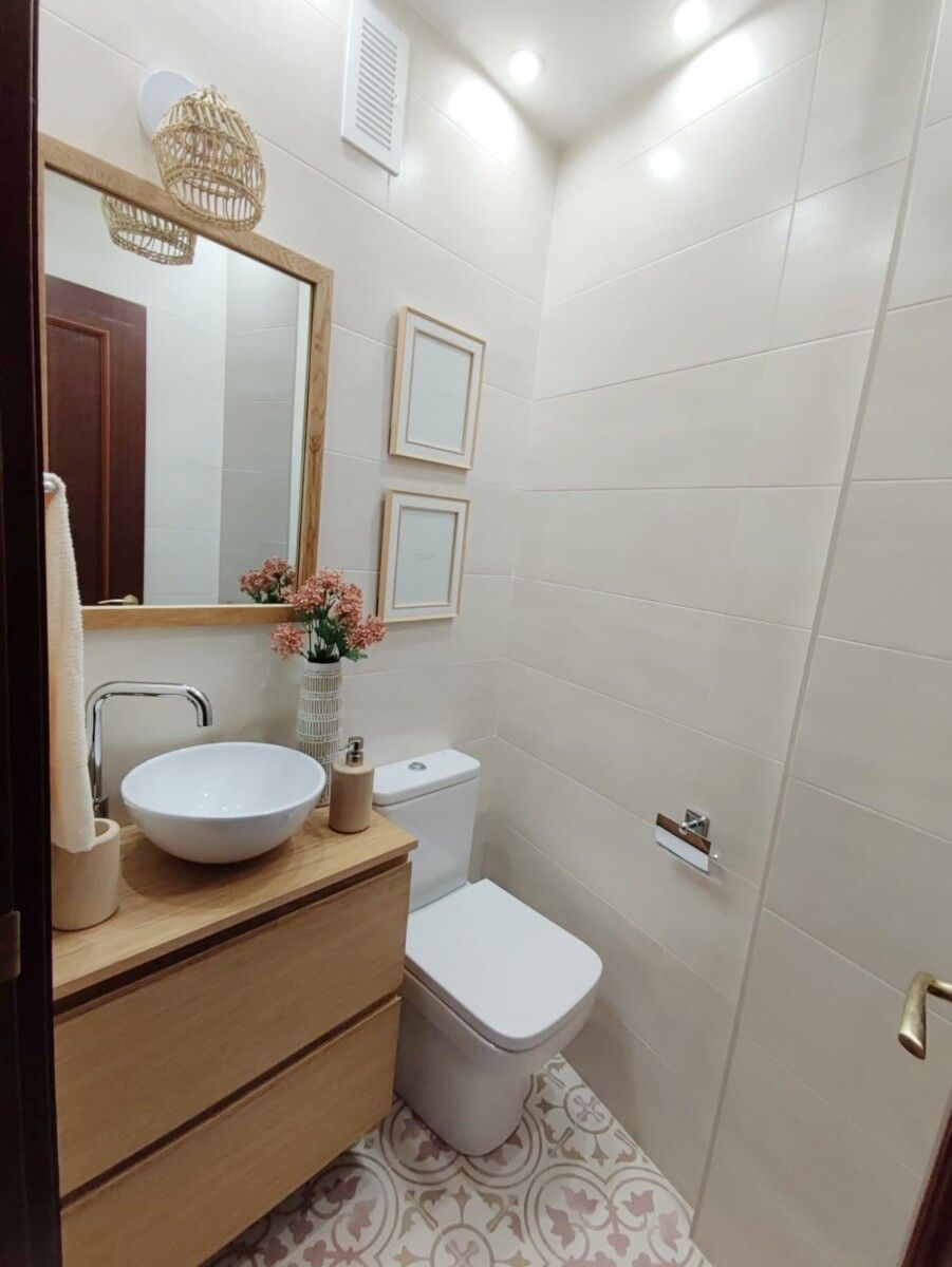 En esta ocasión, para el diseño, escogimos azulejos de estilo mosaico para el suelo de ambos espacios con el fin de darle personalidad a esta transformación. No obstante, seleccionamos un azulejo más neutro y sencillo para las paredes. De este modo, conseguimos crear un ambiente único y que con el paso de los años no nos abrumara.